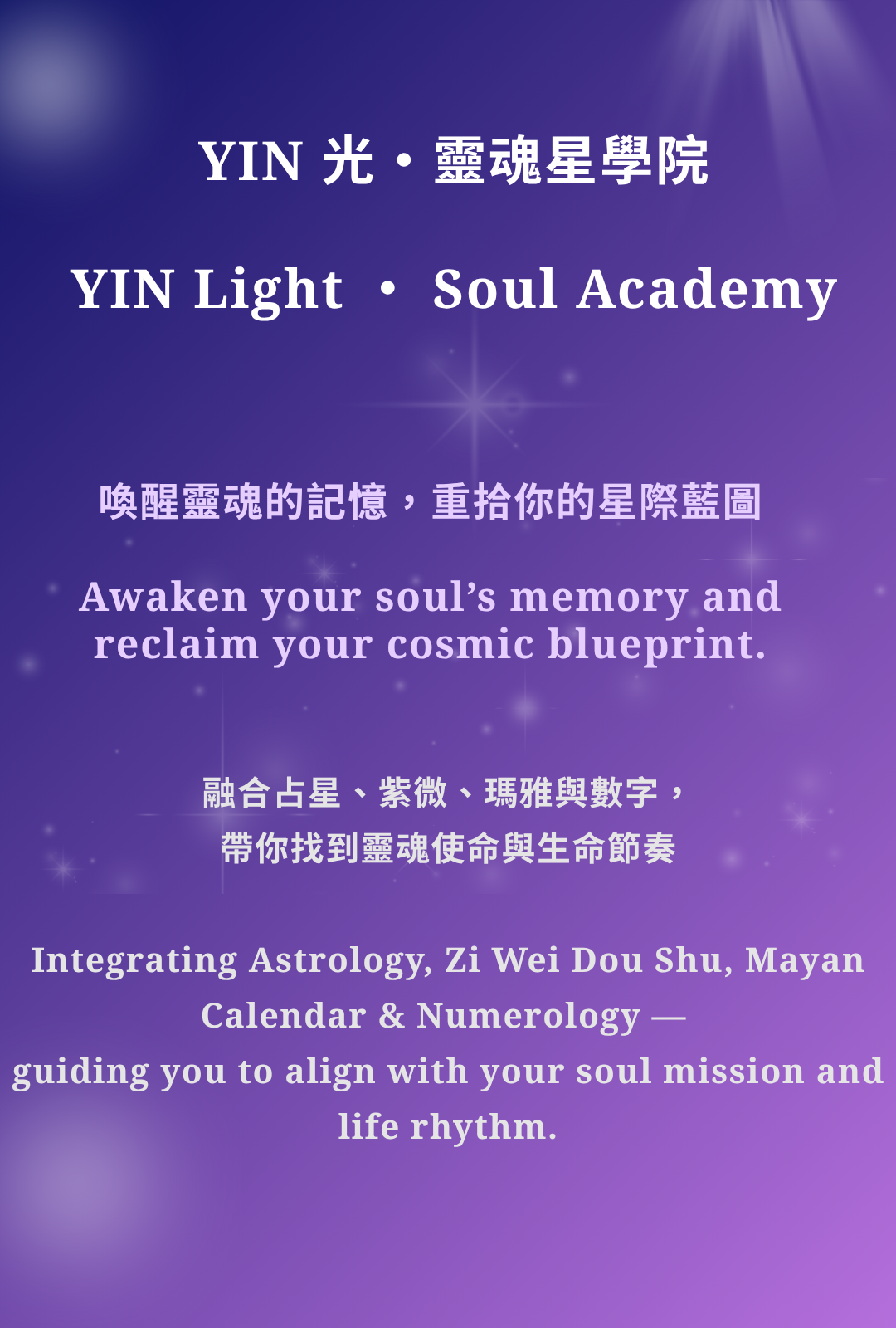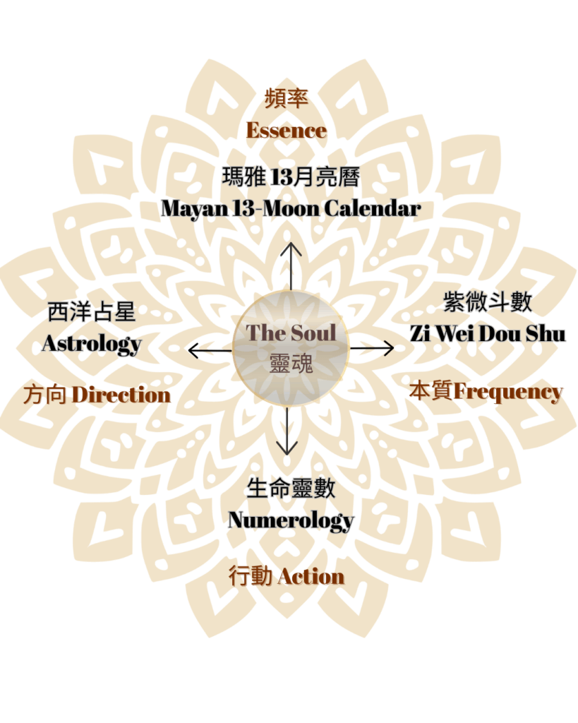 透過西洋占星、紫微斗數、瑪雅曆與生命靈數,協助你理解靈魂設計的藍圖,